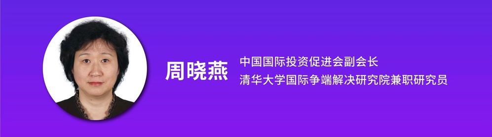 周晓燕,中国国际投资促进会副会长,清华大学国际争端解决研究院兼职研究员。曾在国家商务部任职法律工作司局领导;参与中国涉外经贸法律法规起草,参与多、双边国际经贸协定谈判。现还担任中国国际经济贸易仲裁委员会、深圳国际仲裁院资深仲裁员。
